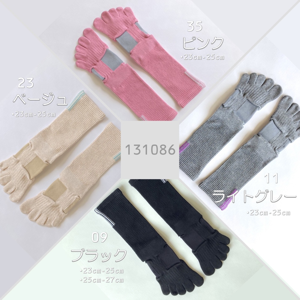 | 品番:商品名 | 131086: タグストライプ ハイクルー (Support Type) 5本指ソックス |
