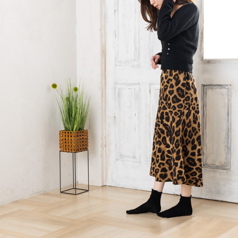 ボタニカルデザインの「足裏滑り止め」は、グリップ力と耐久性を兼ね備えたABSコーティング(シリコン製)。ソックスに負荷がかかるカカトや中足骨、そして母趾(親指)にこの滑り止めを配置することで、薄手で軽やかな履き心地と耐久性を両立しました。