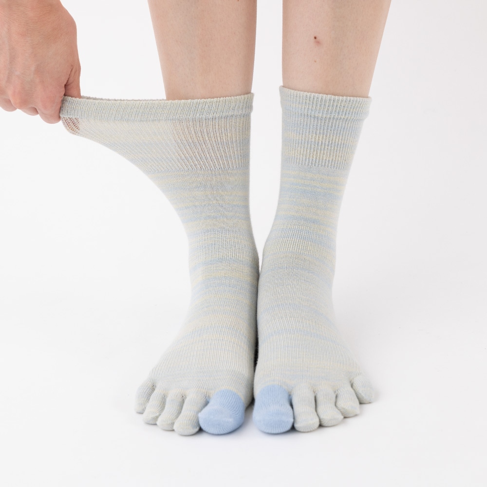 ソックスの左右が見分けやすいよう、母趾(親指)とカカトの色を切り替えているのもデザインのアクセントに。