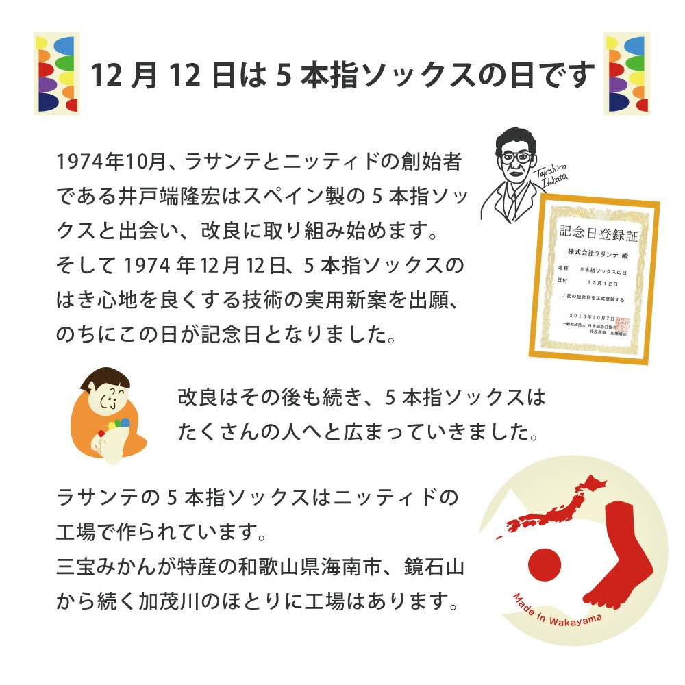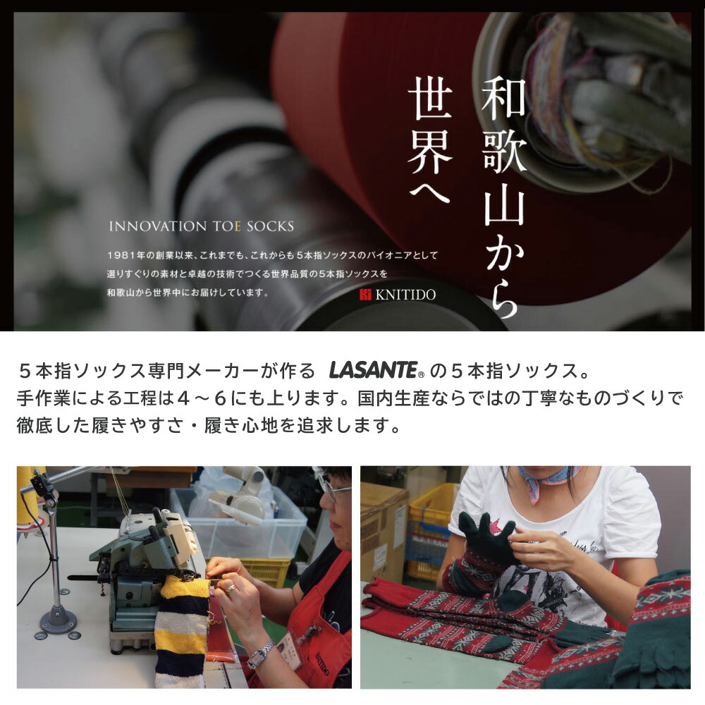 ■安心の日本製:日本国内の5本指ソックス専門メーカーが作るLASANTEの5本指ソックス。手作業による工程は4~6にも上ります。国内生産の丁寧なものづくりで徹底した履きやすさ・履き心地を追求します。