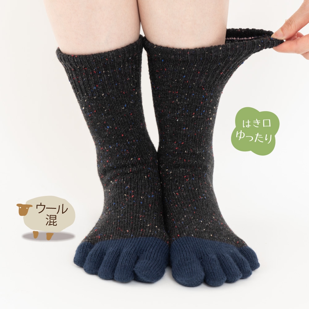 ユビラックス ネップローゲージウール混 S(22-24cm) M(24-26cm) 【40903】 ゆったり 五本指 五本指靴下 5本指靴下 5本指ソックス レディース メンズ 日本製